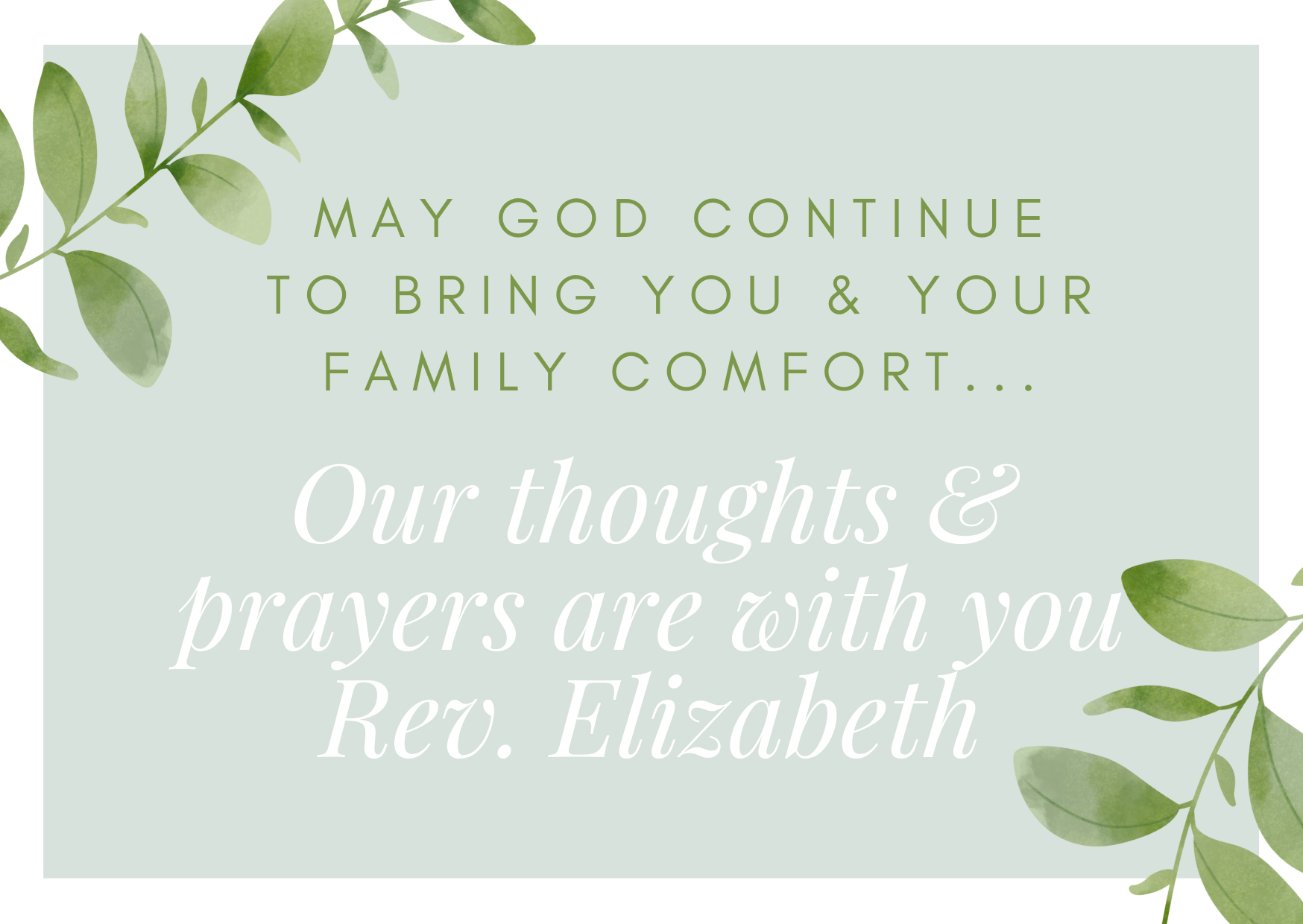 It is with saddened hearts that we share the news of Rev. Elizabeth Cassutto’s mother passing. She has gone on to be with the Lord.
