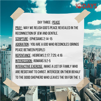We pray: May we relish God’s PEACE revealed in the reconnection of Jew and Gentile.