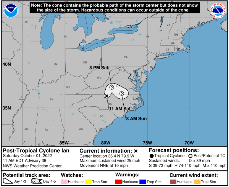 Praise the Lord for our area, Hurricane Ian has been downgraded to Post-Tropical Cyclone Ian.  We still are subject to flash flooding events but Praise God we will not be subject to what others have received.