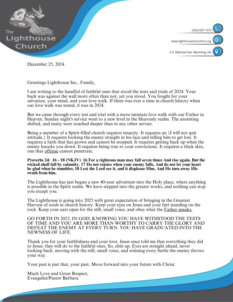Letter to the Lighthouse 2024 December 24, 2024 by Admin Printable Version – Click Here Printable Version – Click Here