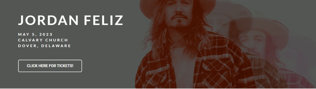 Jordan Feliz {Somebody Loves You Tour} will be at Calvary Church 1141 East Lebanon Road Dover DE 19901 this Friday May 5th @7:00 pm. Doors open @6:15 pm.